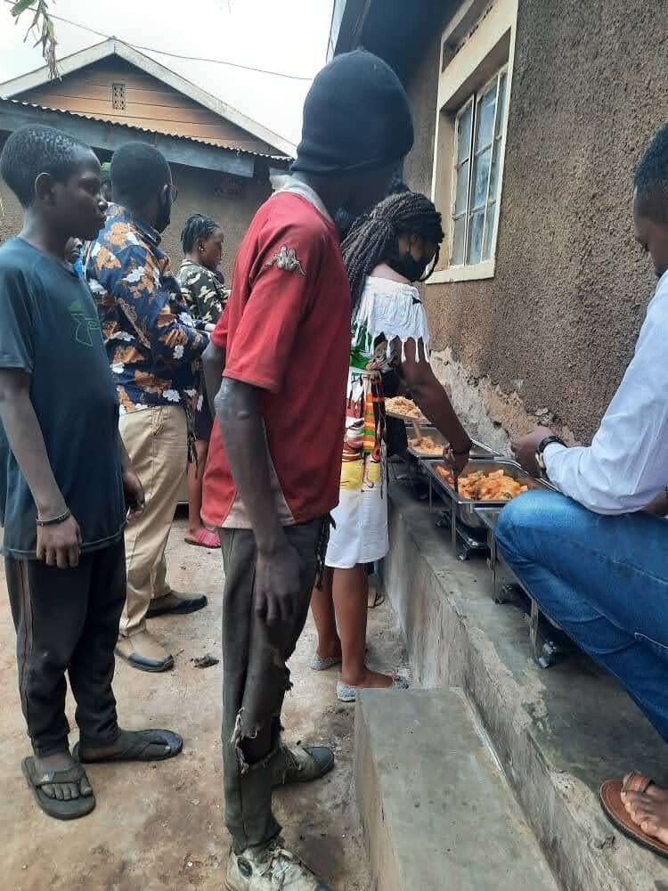 "Na ongeveer twee weken nam mijn stiefmoeder mijn broers en zussen mee naar het dorp, zodat Kevin er niet meer was. Ik kon niets meer te eten vinden. Dus daar besloot ik de straat op te gaan. Een van de jongens in de het asiel stelde me voor aan de groep en ik begon met hen te vertrekken, maar ik was altijd bang om de situatie te zien waarin ze leven. Ik besloot naar een andere opvang te gaan waar ik 's nachts kon slapen en overdag ging ik weer terug naar de eerste opvang groep. Toen we op een dag schroot aan het verzamelen waren (oude/nutteloze metalen verkocht door de straatkinderen om wat geld te verdienen), arresteerde de politie ons en ze brachten ons naar een kindergevangenis. Ik was daar een nacht en daarna werd geholpen door een organisatie in Oeganda die mijn borg betaalde en me opnam. In die organisatie sloot ik me aan bij een voetbalteam genaamd Fufa en ze brachten me ook terug naar school. De tijd kwam in 2020 dat deze mensen me terug naar huis wilden brengen "