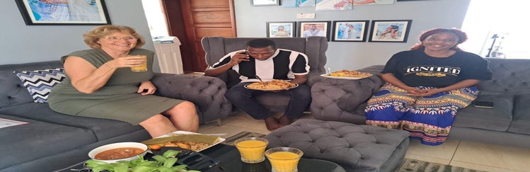 Om 14.30 uur hadden we onze lunch, het was zo lekker. Dit werd geserveerd door de Mark (chef-kok. We hadden het tijdens het kletsen met de kinderen. Ze vertelden ons hoe ze zich de laatste tijd voelden. Een van hen zei: "Op zondag heeft God ons een weg voor ons gemaakt, jullie brengen lekker eten voor ons en jullie mensen, jullie zijn anders, jullie geven ons eten en verwachten er niets voor terug"